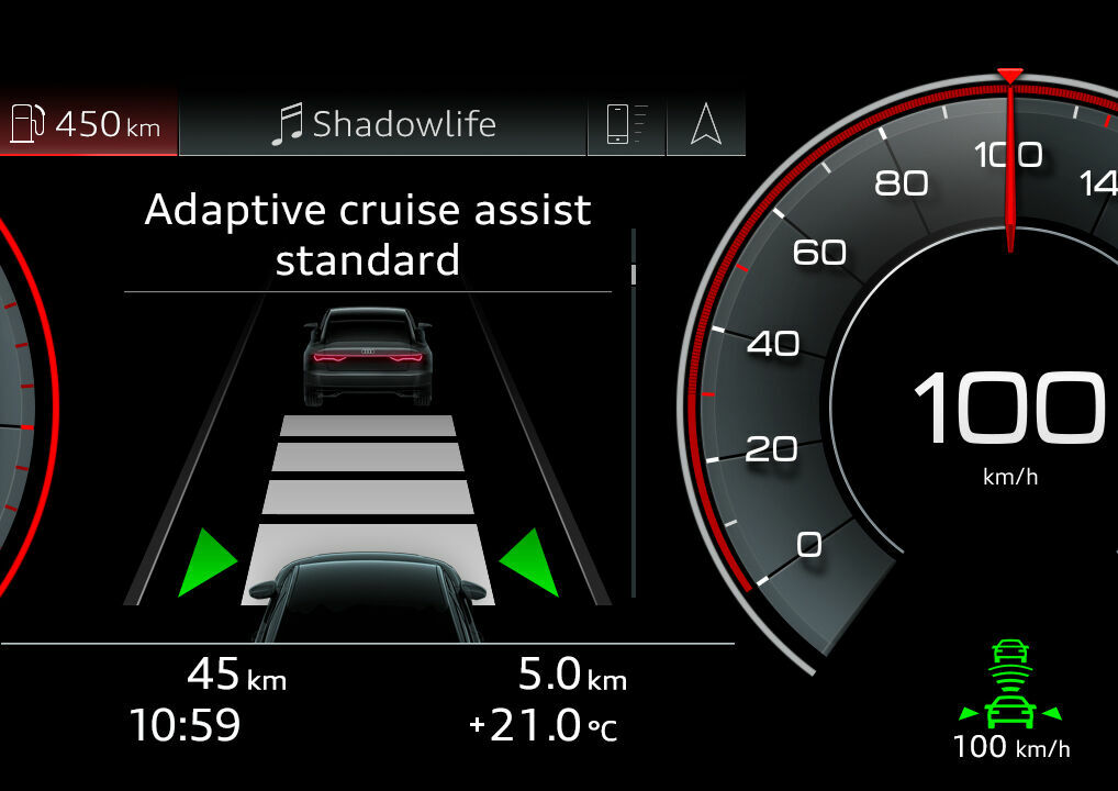 Aktivierung der adaptiven Geschwindigkeitsregelung für automatisches Bremsen und Beschleunigen im fließenden Verkehr – komfortabel & sicher.